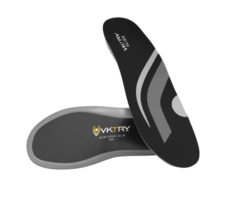 Las plantillas VKTRY Silver se pueden usar con la mayoría de las zapatillas deportivas y deportivas de diario. Son flexibles y se personalizan según el peso.